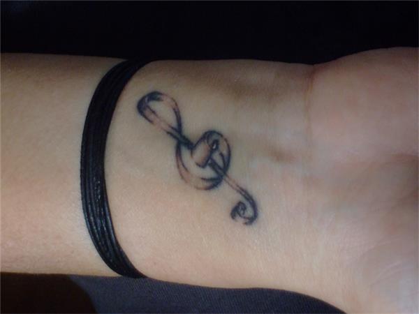 3 Boyutlu Sol Anahtarı Dövmesi / 3D G Key Music Tattoo, Müzik müzisyen nota dövmeleri, Küçük güzel bilek dövmeleri