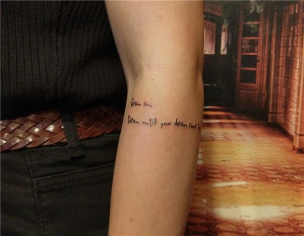 Aerosmith Dream on Şarkı Sözü Dövmesi / Aerosmith Dream on Lyrics Tattoo, Kol Yazı Dövmeleri, Şarkı Sözü Dövmeleri, Dream on Dream until your dream come true Tattoo, Dream On Dövmesi, Aerosmith Tattoo