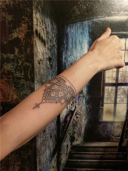 Alt Kol Üzerine Mandala Motifi Dövme / Mandala Tattoo on Arm, Kol Üzerine Dövmeler, Şerit Bant Mandala Dövme, İşlemeli Güzel Motifler, Güzel Kadın Dövmeleri