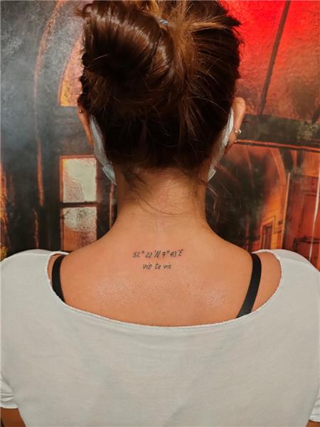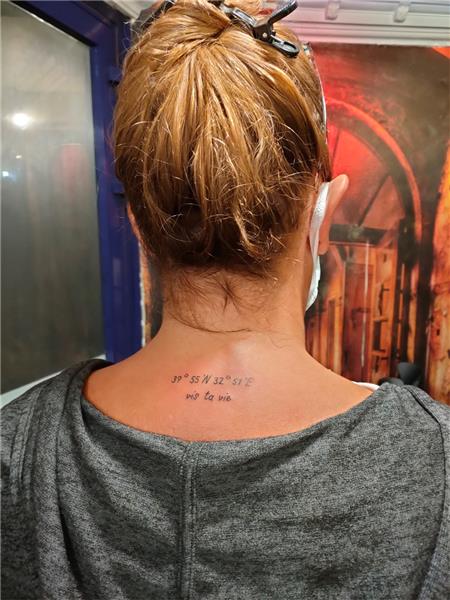 Anne Kız Doğum Yerş Koordinatları ve Vis ta Vie Hayatı Yaşa Yazısı Dövmesi, Koordinat Dövmesi, Yazı Dövmeleri, Ense Dövmeleri, Yazı Dövmeleri, Anne Kız Dövmeleri