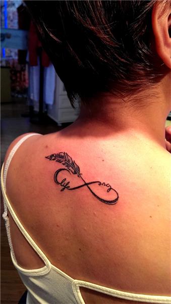 Aşk Yaşam Sonsuzluk Tüy Dövmesi / Love Life Infinity Feather Tattoo, Sırt Dövmesi