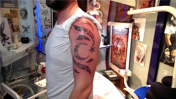 Türkiye Cumhuriyeti Atatürk Ay Yıldız Dövmesi Tribal Dövme Bayrak Dövmesi Türk Bayrağı Dövmesi Turkish Flag Tattoo Omuz Dövmesi Üst Kol Dövmesi