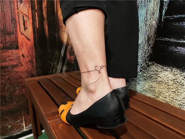 Ayak Bileğine Çizgi Kalp Yıldız Halhal Dövme / Line Heart Star Anklet Tattoo