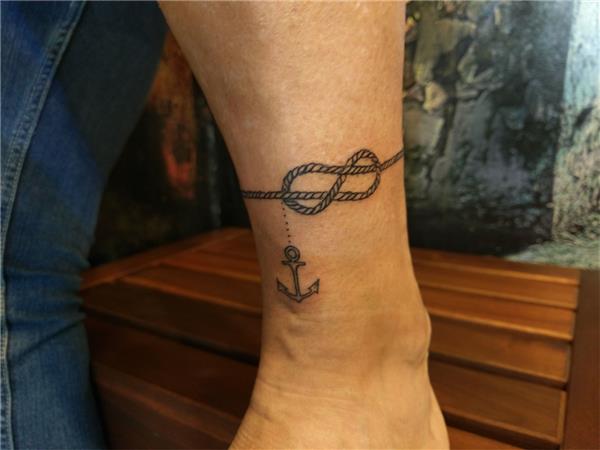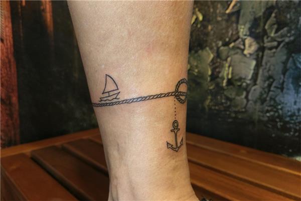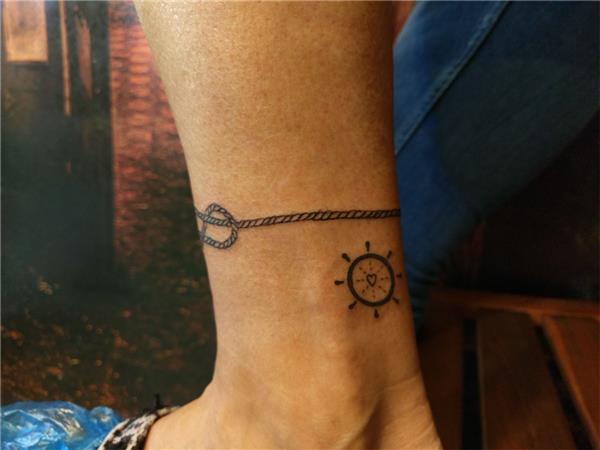 Ayak Bileğine Hal Hal Şeklinde Halat Gemici Düğümü Çapa Yelkenli Dümen Dövmesi, Hal Hal Dövmeleri, Ayak Bileğine Dövme, Denizci Dövmeleri, Çapa Dövmesi, İp Dövmesi, Yelkenli Gemi Dövmesi, Dümen Dövmesi