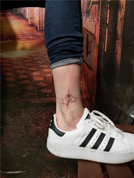 Ayak Bileğine Pusula ve Yıldızlar Dövmesi / Compass and Stars Ankle Tattoo