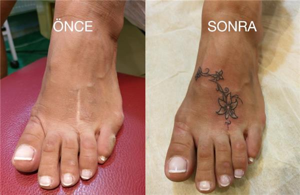 Ayak Üzerin Dikiş İzi Çiçek Dövmesi ile Kapatma / Scar Tattoo Cover Up with Flower, Ayak Üzeri Yara Kesik Dikiş Ameliyat İzi Dövme ile Kapatma Çalışması