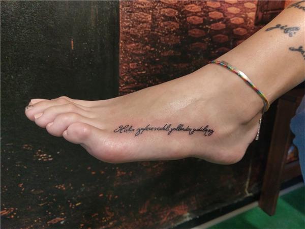 Ayak Üzerine Hiçbir Zafere Çiçekli Yollardan Gidilmez Yazı Dövmesi La Fontaine, Ayak Dövmeleri, Ayak Üzerine Yazı Dövmesi, Anlamlı Sözler Dövmesi, La Fontaine Tattoo