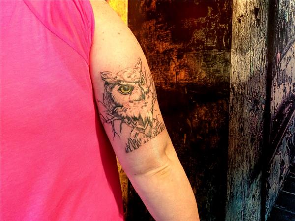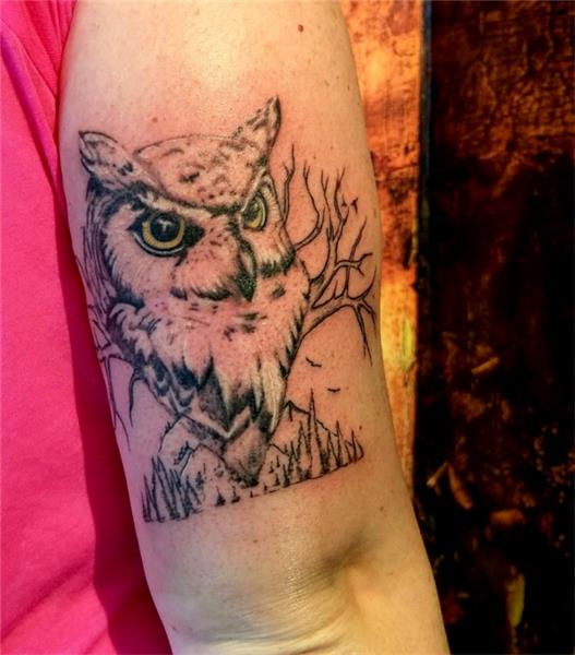 Baykuş Dövmesi / Owl Tattoo, Baykuş Dövmeleri, Owl Tattoos, Kol Dövmeleri, Hayvan Dövmeleri, Animal Tattoos, Doğa Dövmeleri, Kuş Dövmeleri, Ağaç Dağlar Doğa Dövmeleri, Nature Tattoos, Tree Tattoos, Baykuş Dövmesi Anlamı, bilgiyi, belleği, bilgeliği ve bilgi sahiplerini de koruyucu bir anlam taşımaktadır.