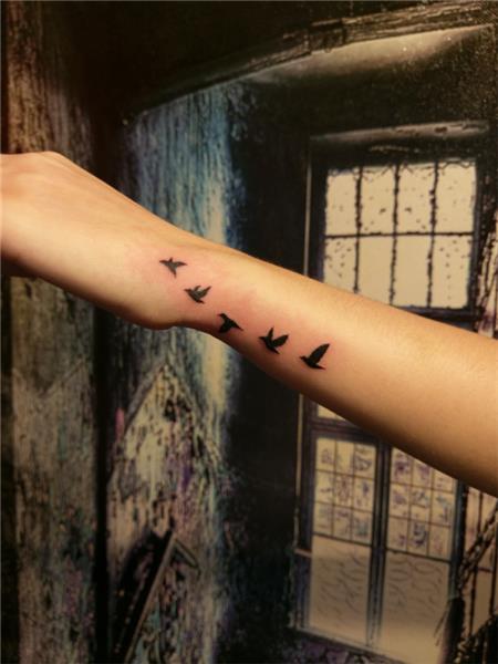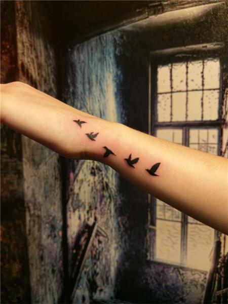 Bilekte Uçan Kuşlar Dövmesi / Flying Birds Tattoo, Zarif Şık Güzel Küçük Kuş Dövmeleri, Bileğe Kuş Dövmeleri, Bilek Dövmeleri, Minimal Tattoos, Minimal Dövmeler, Bileğe 5 kuş Dövmesi, 5 flying birds tattoo
