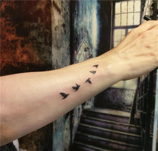 Bilekte Uçan Kuşlar Dövmesi / Flying Birds Tattoo, Kuş Dövmeleri, Bird Tattoos, Uçan Kuşlar Dövmesi, Bilek Dövmeleri, Beş Tane Uçan Kuş Dövmesi, Minimal Tattoos, Minimal Dövmeler