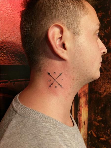 Boyuna Oklar ve Pusula Dövmesi / Arrows and Compass Tattoo on Neck, Boyun Dövmeleri, Pusula Dövmeleri, Ok Dövmeleri