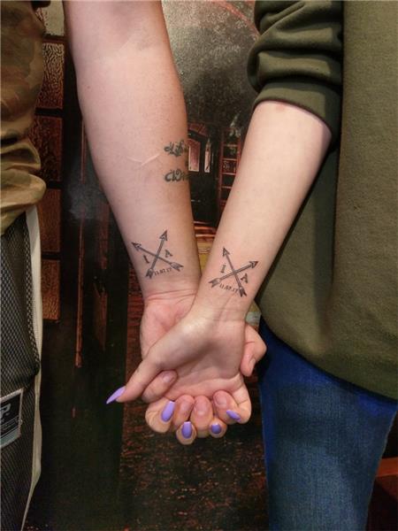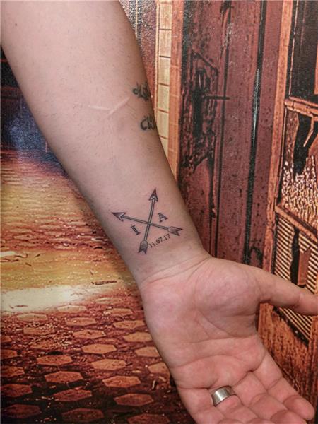 Çapraz Oklar Tarih İsim Baş Harfleri Sevgili Dövmesi / Crossed Arrows Date Couple Tattoos