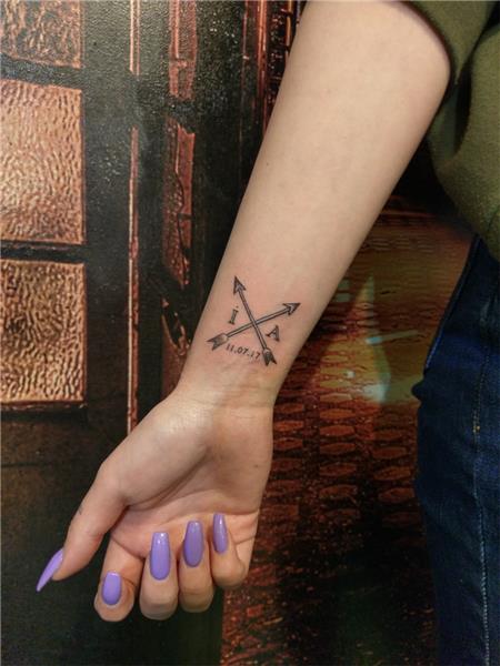 Çapraz Oklar Tarih İsim Baş Harfleri Sevgili Dövmesi, Crossed Arrows Date Couple Tattoos, Çift Dövmeleri, Arrow Tattoos, Ok Dövmeleri, Baş Harf Dövmeleri, Bilek Dövmeleri *Fiyat tek dövme için geçerlidir.