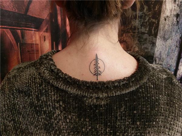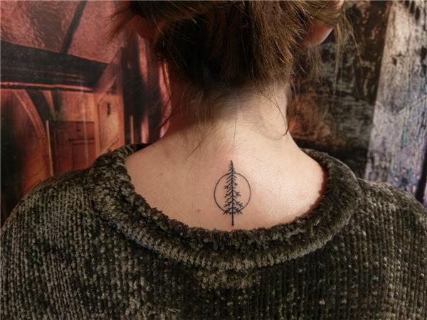 Çember içinde Çam Ağacı Ense Dövmesi / Pine Tree Circle Back Tattoo