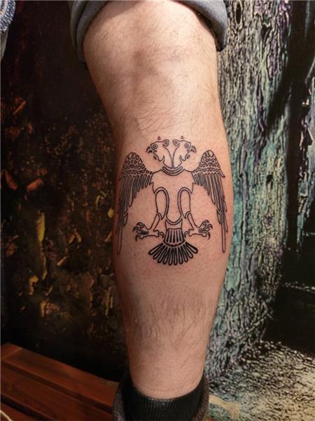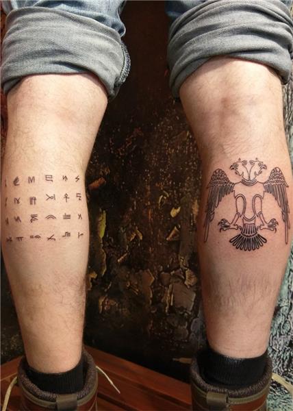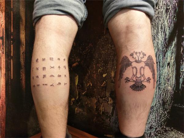 Çift Başlı Göktürk Kartalı ve Oğuz Boylarının Tamgaları Dövmesi, Double Headed Eagle Tattoo, Bacak Dövmeleri, Kartal Dövmeleri, Göktürk Dövmeleri, Tamga Dövmeleri