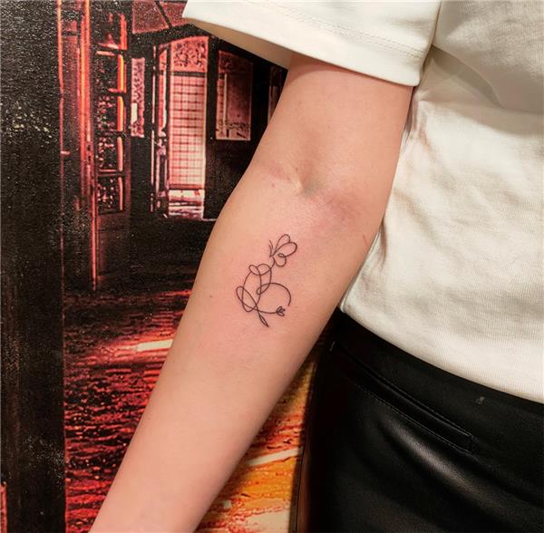 Çizgisel Kalp Kelebek Çiçek Dövmesi / Heart Butterfly and Flower Line Work Tattoo
