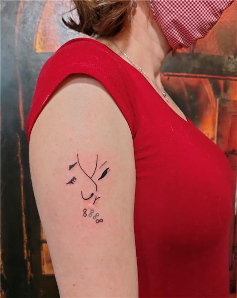 Çizgisel Öpüşen Çift ve Sonsuzluk İşaretleri Dövmesi / Couple Kissing and Infinity Symbols Tattoo