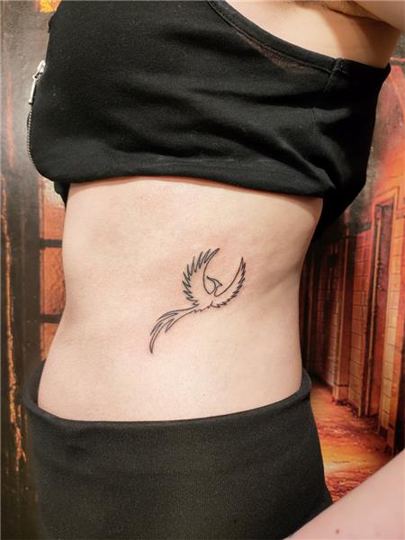 Çizgisel Zümrüdü Anka Kuşu Dövmesi / Minimal Phoenix Tattoo