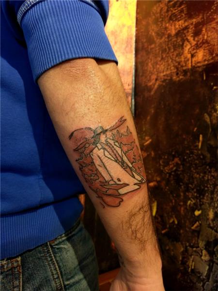 Çocukluk Çizimi Yarım Kalmış Dövme Düzeltme Tamamlama Çalışması, Çocukluk Rüyası, Ateşler içerisinde adam dövmesi