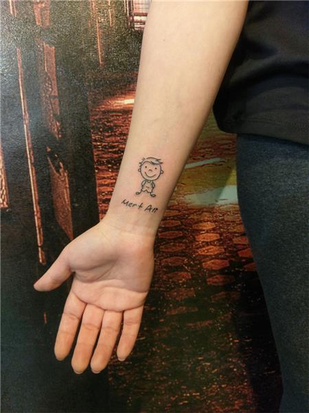 Çöpten Çocuk ve Ýsim Dövmesi / Stick Boy and Name Tattoo, Çöpten Adam Dövmesi, Çocuk Çizimi Dövme, Mert Ali Ýsim Dövmesi, Çocuk Dövmeleri, Bilek Dövmeleri, Çocuk Ýsmi ve Çocuk Çizimi Dövme