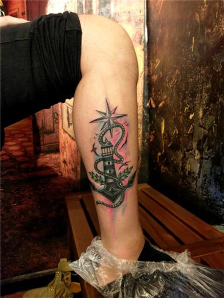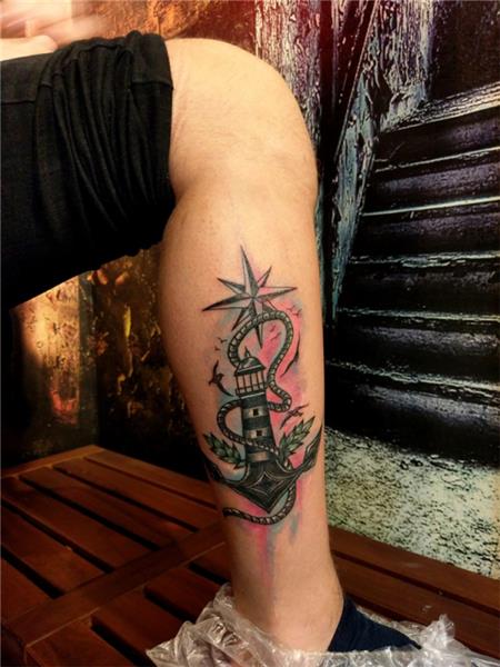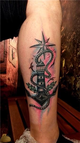 Deniz Feneri ve Çapa Dövmesi Düzeltme Çalışması / Lighthouse and Anchor Tattoo Cover Up, Kuşlar Martılar Dövmesi, Seagull Tattoos, Pusula Dövmesi, Compass Tattoo