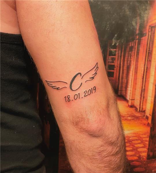 Dirsek Üstüne Harf Kanat ve Tarih Dövmesi, Letter Wing and Date Tattoo