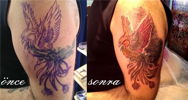 Anka Kuşu Dövmesi, Dövme Kapatma, Cover Up Tattoo, Cover Up Tribal Kapatma Dövmesi, Phoenix Tattoo, Colorful Phoenix Tattoo
