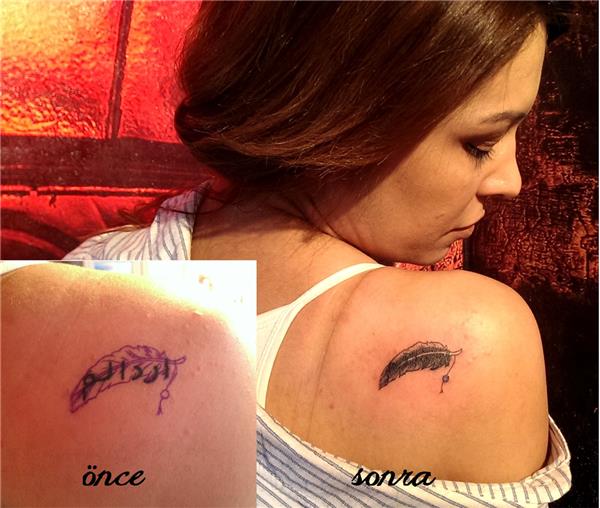 Arapça isim dövmesi boncuklu tüy dövmesi ile kapatma
