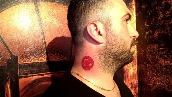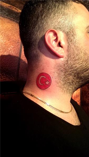 Ay yıldız Türk bayrağı ile boyun öpücük dövmesi kapatma, neck kiss tattoo cover up to Turkish Flag