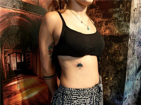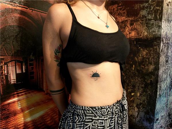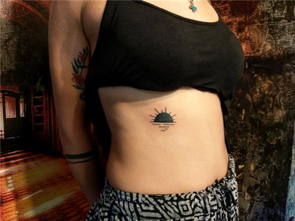 El Çizimi Old School Güneş Dövmesi / Hand Drawn Old School Bold Line Sun Tattoo, Sunset Tattoo Black Sun Tattoo, Sun Sea Tattoo, Gün Batımı Dövmesi, Batan Güneş Dövmesi, Güneş ve Deniz Sun Sea Tattoo, Kaburga Üzerine Dövme