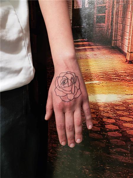 El Üzerine Çizgisel Gül Dövmesi / Rose Tattoo on Hand