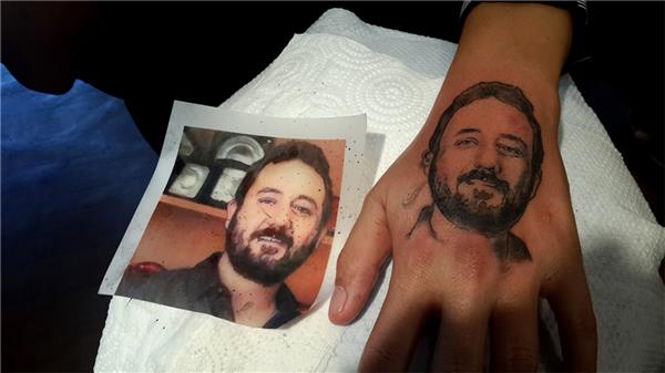El üzerine portre dövme, hand tattoo, hand portrait tattoo, El üzerine yüz portre resim dövmesi, fotoğraftan dövme, Portre Resim Dövme Fiyatları