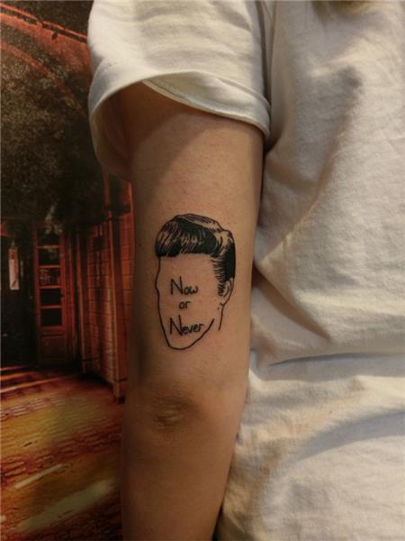 Elvis Presley Çizgisel Yüz Çizimi ve Şarkı Sözü Dövmesi / Elvis Presley Face Silhouette Now or Never Tattoo, Elvis Tattoo, It is now or never tattoo, Elvis Dövmeleri, Elvis Presley Dövmesi, Kol Dövmeleri