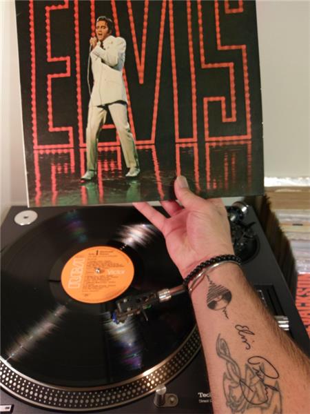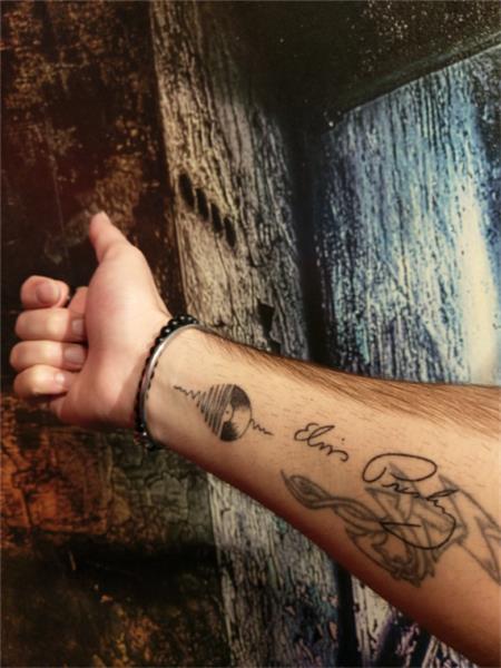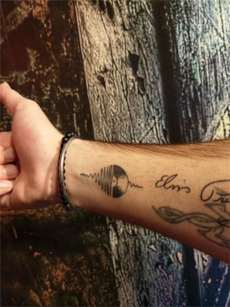 Elvis Presley İmzası ve Ses Dalgası Plak Dövmesi / Elvis Presley Signature and Sound Wave Vinyl Record Tattoo