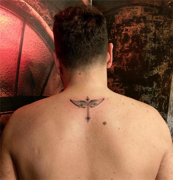 Enseye Haç ve Kanat Dövmesi / Cross and Wings Tattoo