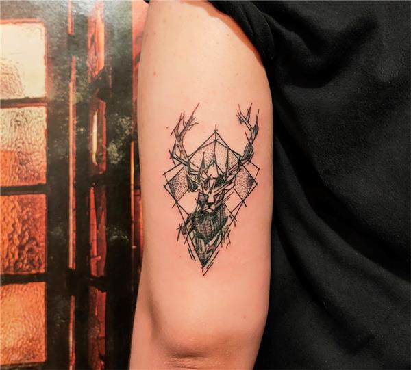 Geyik Dövmesi, Deer Tattoo, Geyik Dövmeleri, Geometrik Dövmeler, Sketch Tattoos, Deer Sketch Tattoo, Deer Tattoos, Geometric Tattoos, Animal Tattoos