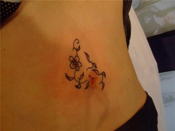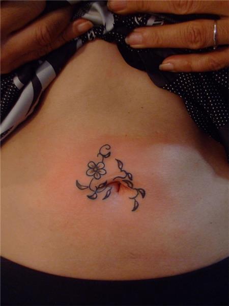 Göbek Çiçek Sarmaşık Dövmesi / Flowers and Ivy on Belly Tattoo, Çiçek Dövmeleri, Göbek Dövmeleri, Göbek Deliği Etrafına Yaprak Çiçek Sarmaşık Estetik Dövme