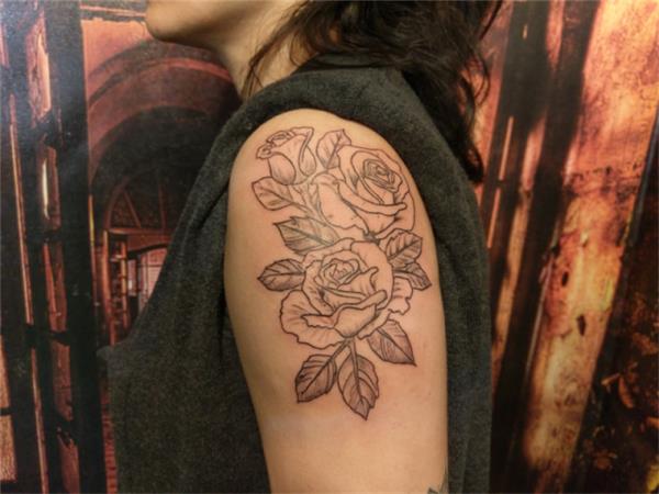 Kola Gölgeli Gül Dövmesi / Rose Tattoos, Gül Dövmeleri, Kol Dövmeleri, Çiçek Dövmeleri, Rose Tattoos, Gölgeli Siyah Gül Dövmesi, Bitkisel Dövmeler, Omuza Gül Dövmesi