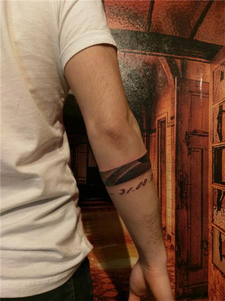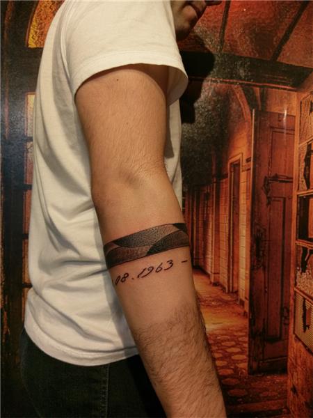 Gölgeli Şerit Bant ve Kolu Saran Tarih Dövmeleri / Shaded Band and Date Tattoo