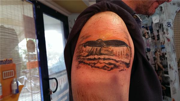 Balina Dövmesi, Whale Tattoo, Whale tail In Sea Tattoo, Gün Batımı Denizdeki Balina Kuyruğu Dövmesi