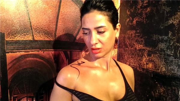 Hak anlamında arapça hat omuz dövmesi