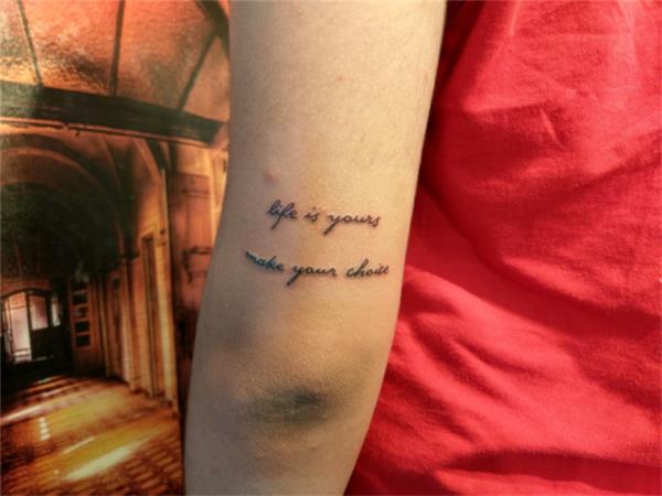 Hayat senin Seçimini Yap Dövme, Life is yours Make your Choice Tattoo, Kol Arkasına Yazı Dövmesi, Kol Dövmeleri, Yazı Dövmeleri