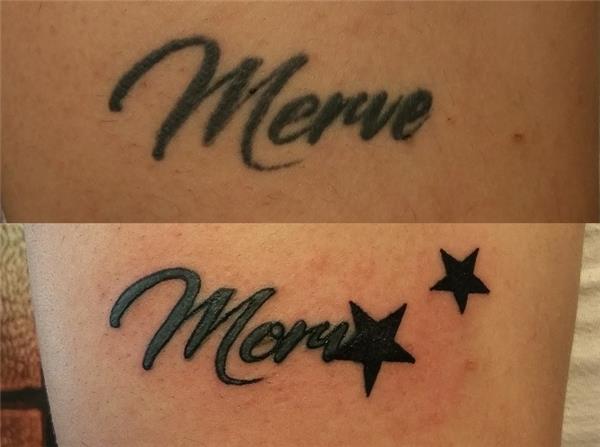 İsim Dövmesi Kapatma, Name Tattoo Cover Up, Merve İsmi Dövmesi Kapatma Çalışması, Mom ve Yıldız Dövmeleri, Mom Star Tattoos Cover Up