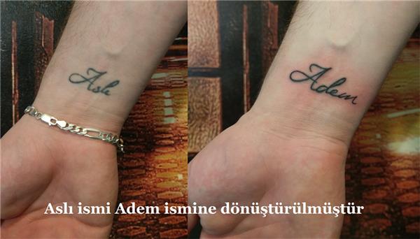 İsim Dövmesi Kapatma Değiştirme , Bilekteki Aslı İsim Dövmesi Adem İsmine Dönüştürülmüştür, Tattoo Cover, Name Tattoo Cover Up, İsim Dövmeleri, İsim Dövmesi Kapatma Değiştirme Çalışması
