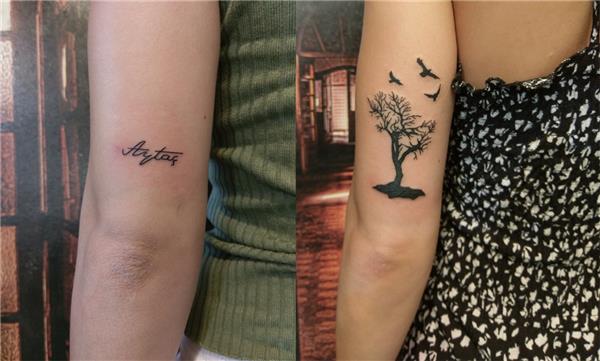 İsim Dövmesi Üzerini Ağaç ve Kuşlar Dövmesi ile Kapatma Çalışması, Name Tattoo Cover Up With Tree and Birds, Aytaç İsmi Dövmesi Kapatma, İsim Dövmesi Kapatma, Tattoo Cover Up, Ağaç Dövmesi, Ağaç ve Uçan Kuşlar Dövmesi, Kol Arkasına Dövme, Kol Arkasına Ağaç Dövmesi