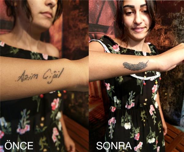 İsim Dövmesi Üzerini Tüy ile Kapatma Çalışması / Name Tattoo Cover Up with Feather, Kol İsim Dövmesi Silme Kapatma Dövme üzerini Dövme ile Kapatma
