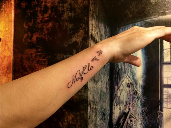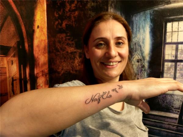 İsimler ve Uçan Kuşlar Dövmesi / Names and Flying Birds Tattoo, Naz Ela İsim ve Kuşlar Dövmesi, Bilek Dövmeleri, Bileğe İsim Dövmeleri, Çocuk İsimleri Dövmesi
