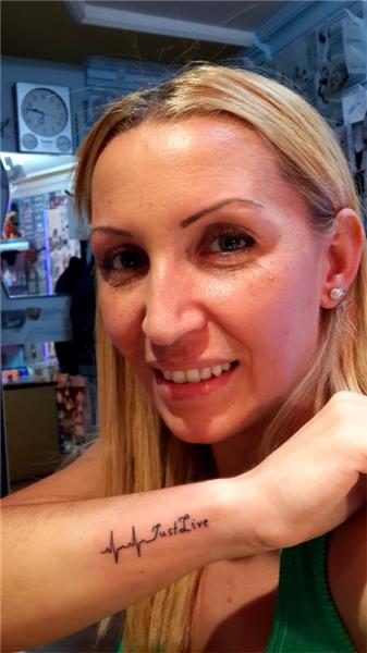 Just Live Kardiyo Kalp Ritmi Dövme / Just Live Heart Rhythm Tattoo, Kol Bilek Yazı Dövmeleri