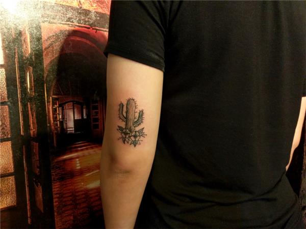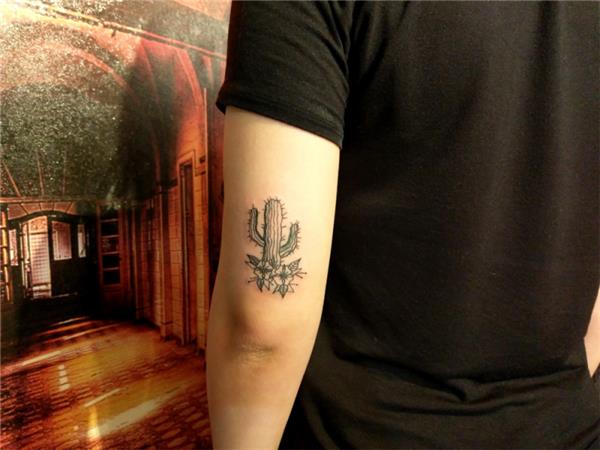 Kaktüs ve Çiçekler Dövmesi / Old School Cactus and Flowers Tattoo, Çizgisel Dövmeler, Kol Dövmeleri, Kol Arkası Dirsek Üstüne Dövme, Değişik Dövme Fikirleri, Kaktüs Dövmeleri