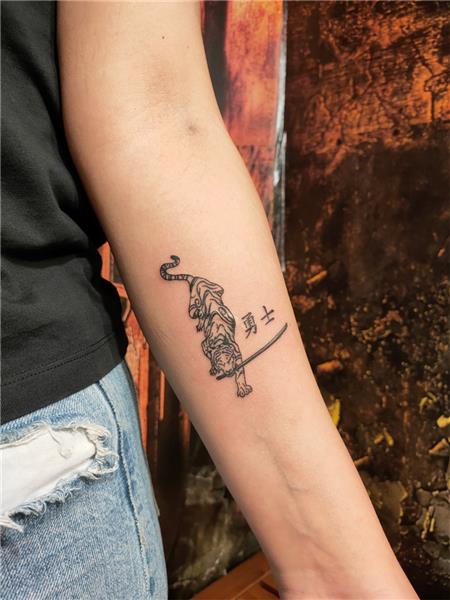 Kaplan Kılıç ve Japonca Savaşçı Yazı Dövmesi / Tiger Sword Katana and Warrior Tattoo
